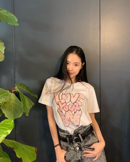 손나은은 24일 자신의 인스타그램에 두 장의 사진을 게재했다. 공개된 사진 속 손나은은 흰색 티셔츠에 회색 바지를 입은 채 미소 짓고 있다.