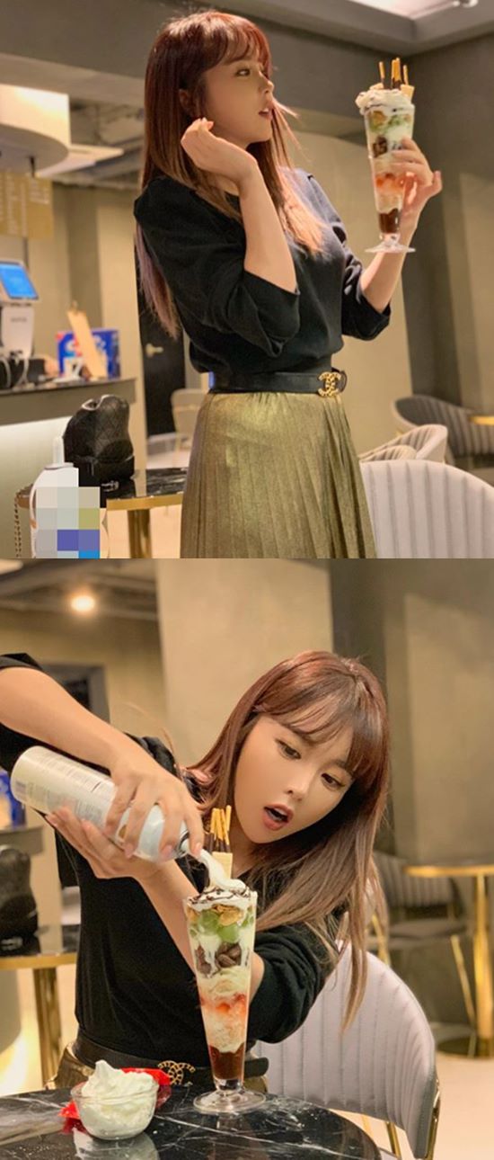 홍진영은 25일 자신의 인스타그램 계정에 "내가 좋아하는 파르페 혼자 만들어먹기. 생크림만 예쁘게 올리면 될 것 같은데..생크림 올려도 올려도 빨리 무너지네요. 기술의 차이인건가. 모두들 좋은 하루 보내세요"라는 글과 함께 사진을 게재했다.