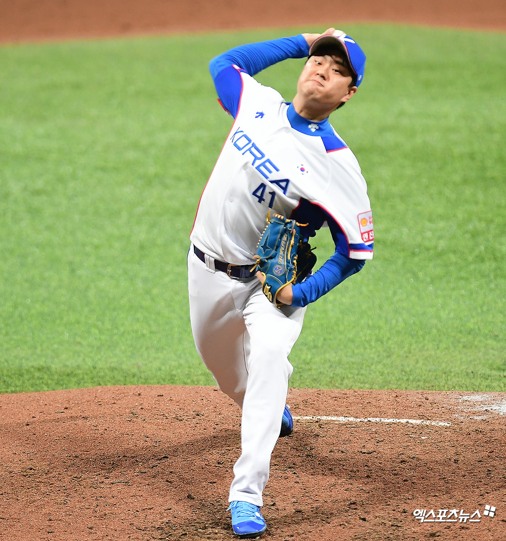 [엑스포츠뉴스 고척, 김한준 기자] 6일 오후 서울 구로구 고척스카이돔에서 열린 '2019 WBSC 프리미어12' 서울 예선라운드 호주와 대한민국의 경기, 7회초 대한민국 이영하가 공을 힘차게 던지고 있다.