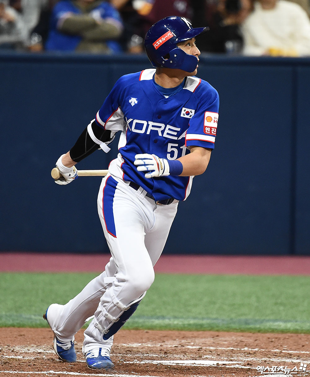 [엑스포츠뉴스 고척, 박지영 기자] 7일 오후 서울 구로구 고척스카이돔에서 열린 '2019 WBSC 프리미어12' 서울 예선 라운드 대한민국과 캐나다의 경기, 4회초 무사 대한민국 선두타자 이정후가 안타를 때려내고 있다.