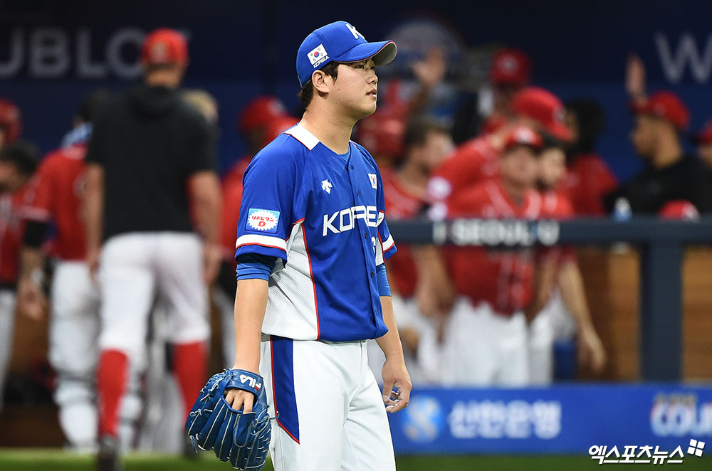 [엑스포츠뉴스 고척, 박지영 기자] 7일 오후 서울 구로구 고척스카이돔에서 열린 '2019 WBSC 프리미어12' 서울 예선 라운드 대한민국과 캐나다의 경기, 8회초 1사 1루 대한민국 함덕주가 캐나다 다빌에게 적시 2루타를 허용한 뒤 아쉬워하고 있다.