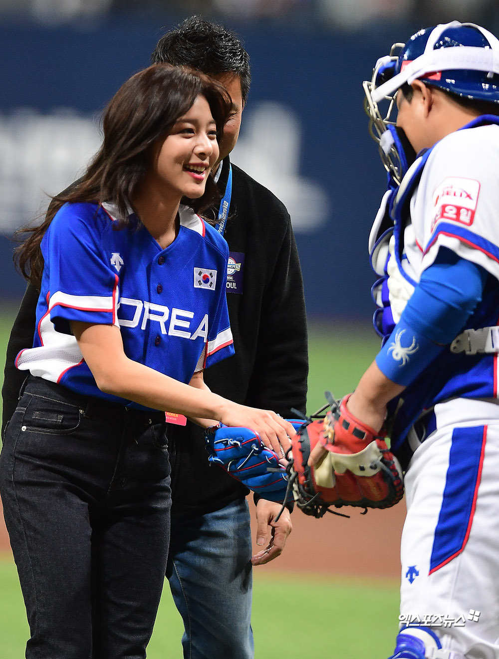 [엑스포츠뉴스 고척, 김한준 기자] 8일 오후 서울 구로구 고척스카이돔에서 열린 '2019 WBSC 프리미어12' 서울 예선라운드 쿠바와 대한민국의 경기, 경기 전 배우 설인아가 시구에 임하고 있다.