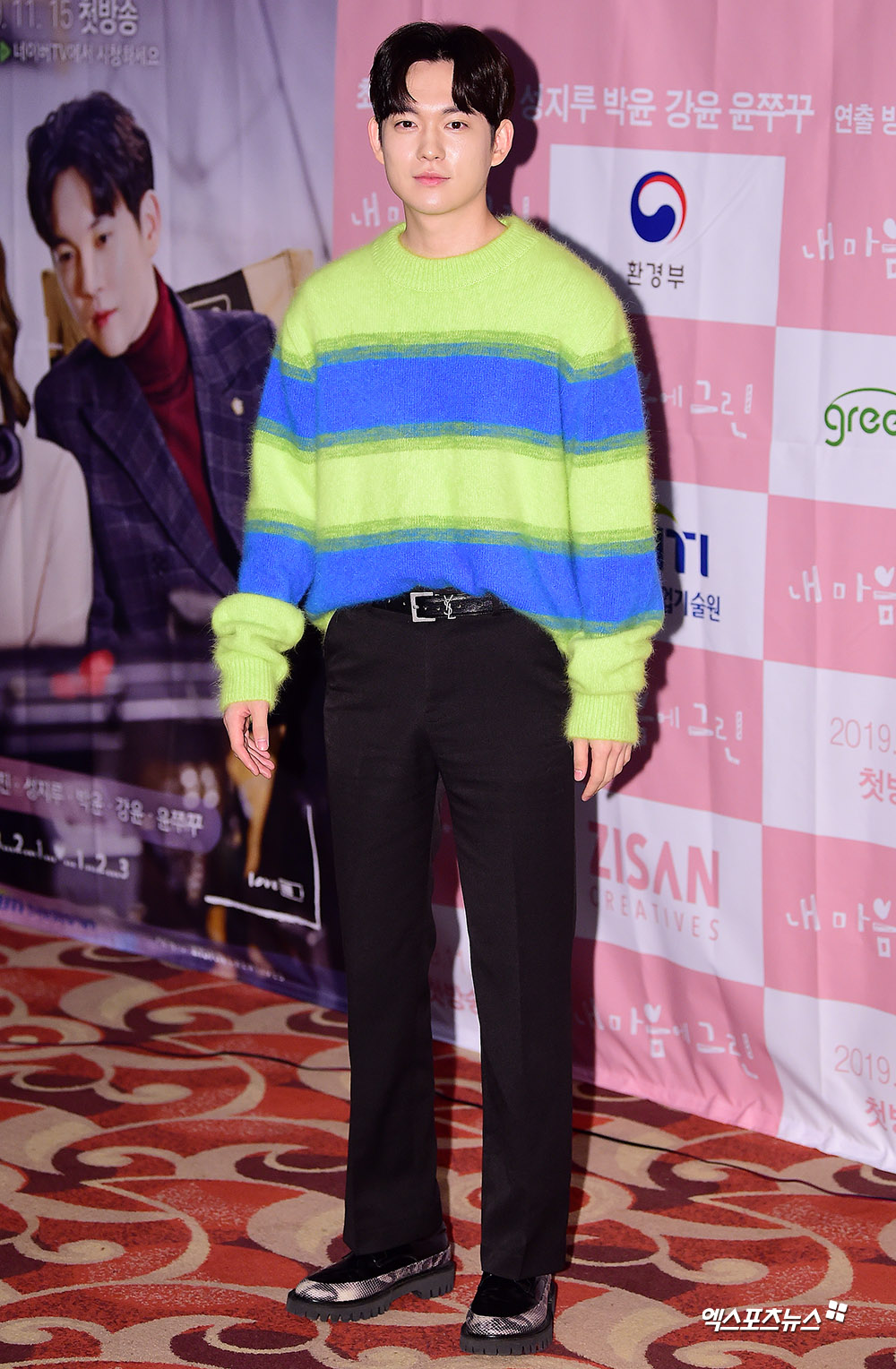 ​[엑스포츠뉴스 김한준 기자] 15일 오후 서울 롯데시네마 영등포점에서 진행된 웹드라마 '내 마음에 그린' 제작발표회에 참석한 최규진이 포토타임을 갖고 있다.