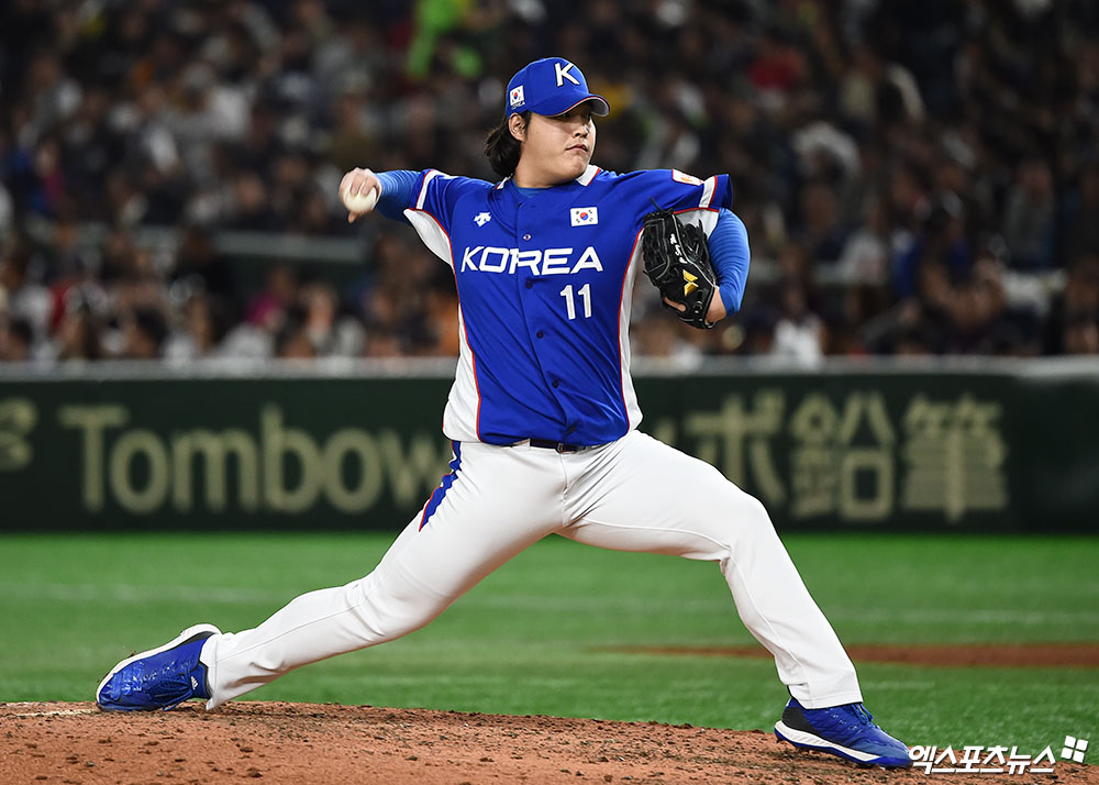 [엑스포츠뉴스 도쿄(일본), 박지영 기자] 17일 오후 일본 도쿄돔에서 열린 '2019 WBSC 프리미어 12' 결승전 대한민국과 일본의 경기, 6회말 2사 3루 대한민국 조상우가 역투하고 있다.