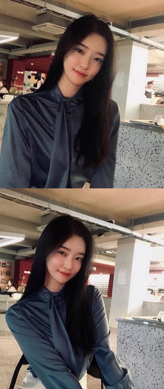 공개된 사진에는 카페에 앉아 포즈를 취하고 있는 김유지의 모습이 담겨있다. 특히 눈부신 청순 미모를 자랑해 시선을 사로잡는다.