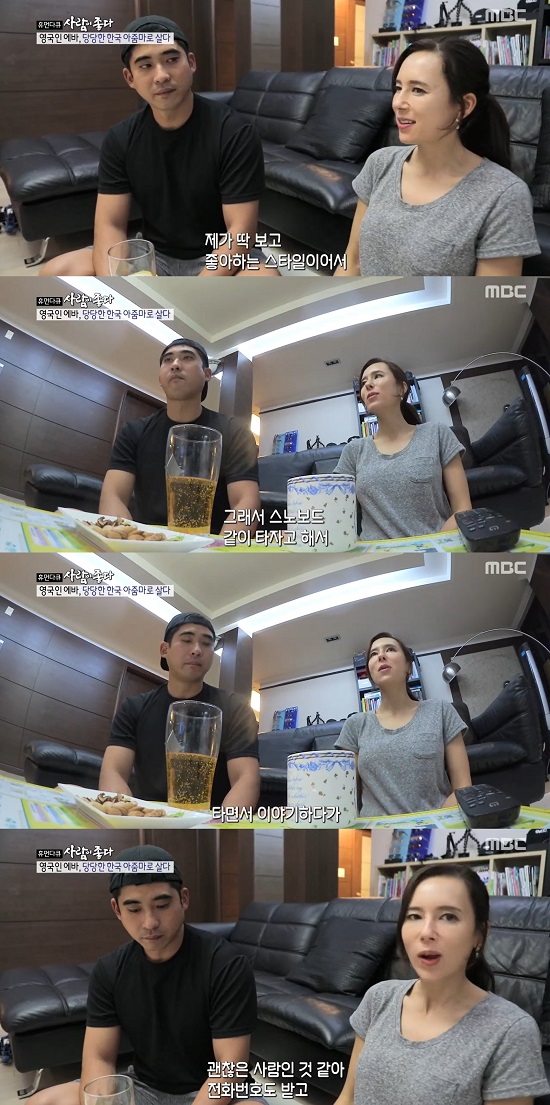 이날 에바 포비엘은 두 아들을 재운 뒤, 남편 이경구 씨와 조촐한 맥주 파티를 열었다. 그는 남편과 만나게 된 계기에 대해 "제가 먼저 대시했다. 제가 좋아하는 스타일이었다. 스노보드 같이 타자고 했는데 괜찮은 사람 같았다. 그렇게 전화번호를 받고 연락을 했다"고 말했다.