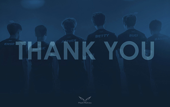 국내 팬들에게도 ‘점멸늑대’라는 별칭으로 잘 알려진 Flash Wolves. 그들의 위와 같은 메시지는 국내외 이스포츠팬들의 관심을 모을 것으로 보인다.