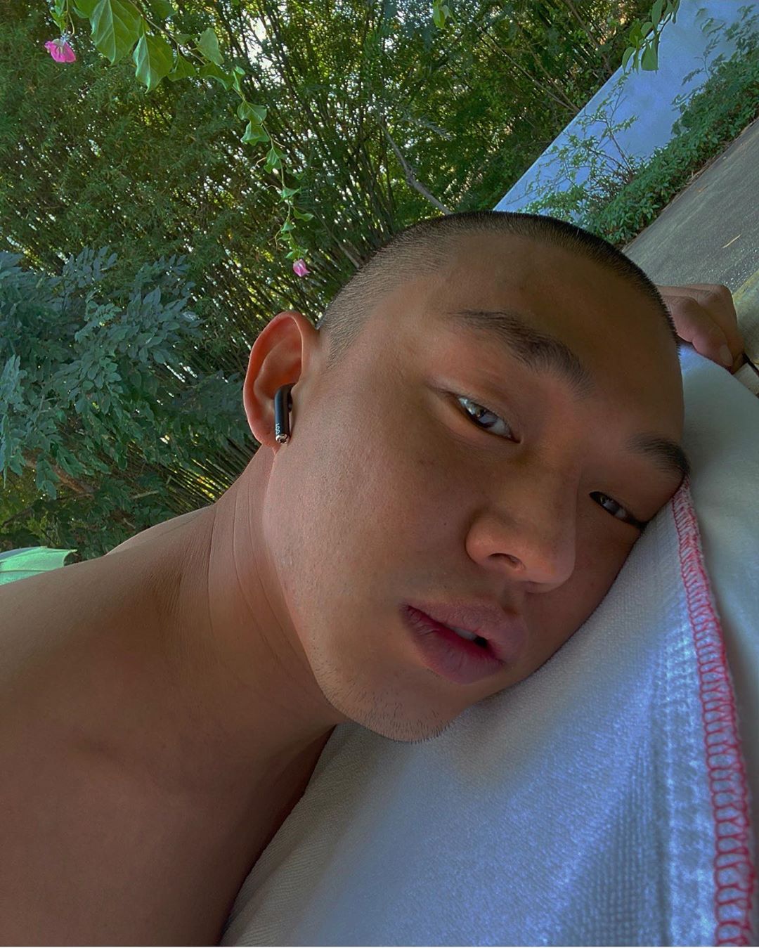 삭발한 유아인, 나른한 눈빛 자랑 중 [★해시태그]