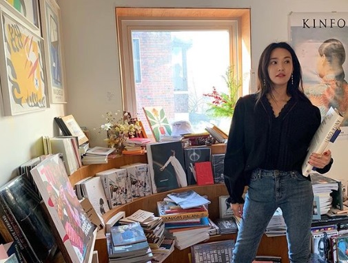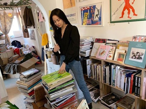 공개된 사진 속 이주연은 검은색 블라우스에 청바지를 입은 모습이다. 이주연은 다양한 서적들이 가득한 곳에서 행복한 듯한 모습을 보이고 있다.