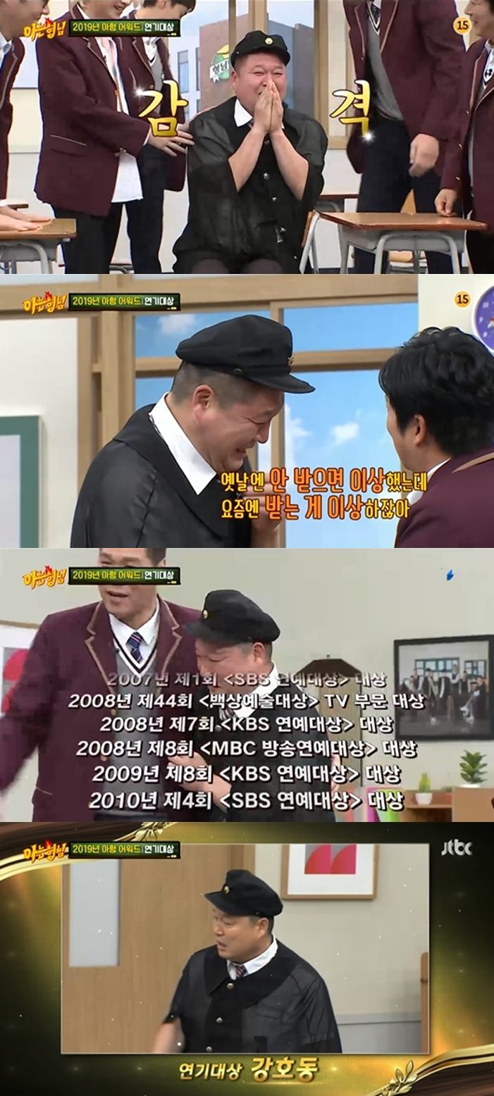 '아는형님' 강호동, 연기대상 수상…이수근 "대상 몇 년 만이냐"