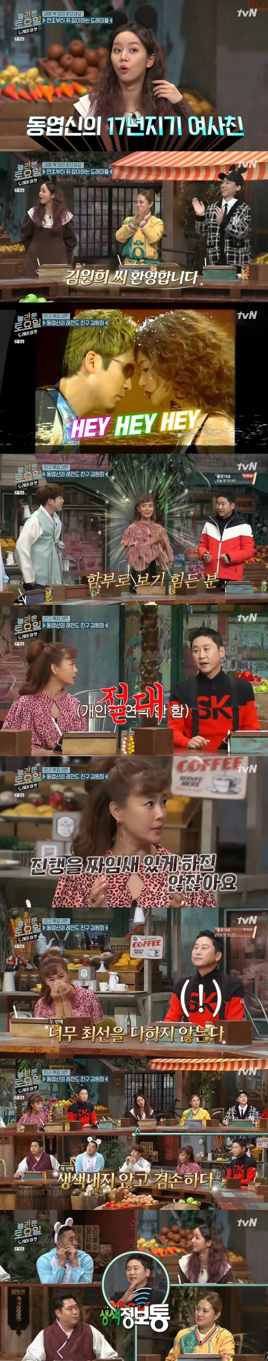 두 사람은 '헤이 헤이 헤이' 이후 오랜만에 함께 머리를 맞대며 등장해 눈길을 끌었다. 신동엽은 "함부로 어디 돌아가는 분이 아니다"라고 김원희를 소개했다.