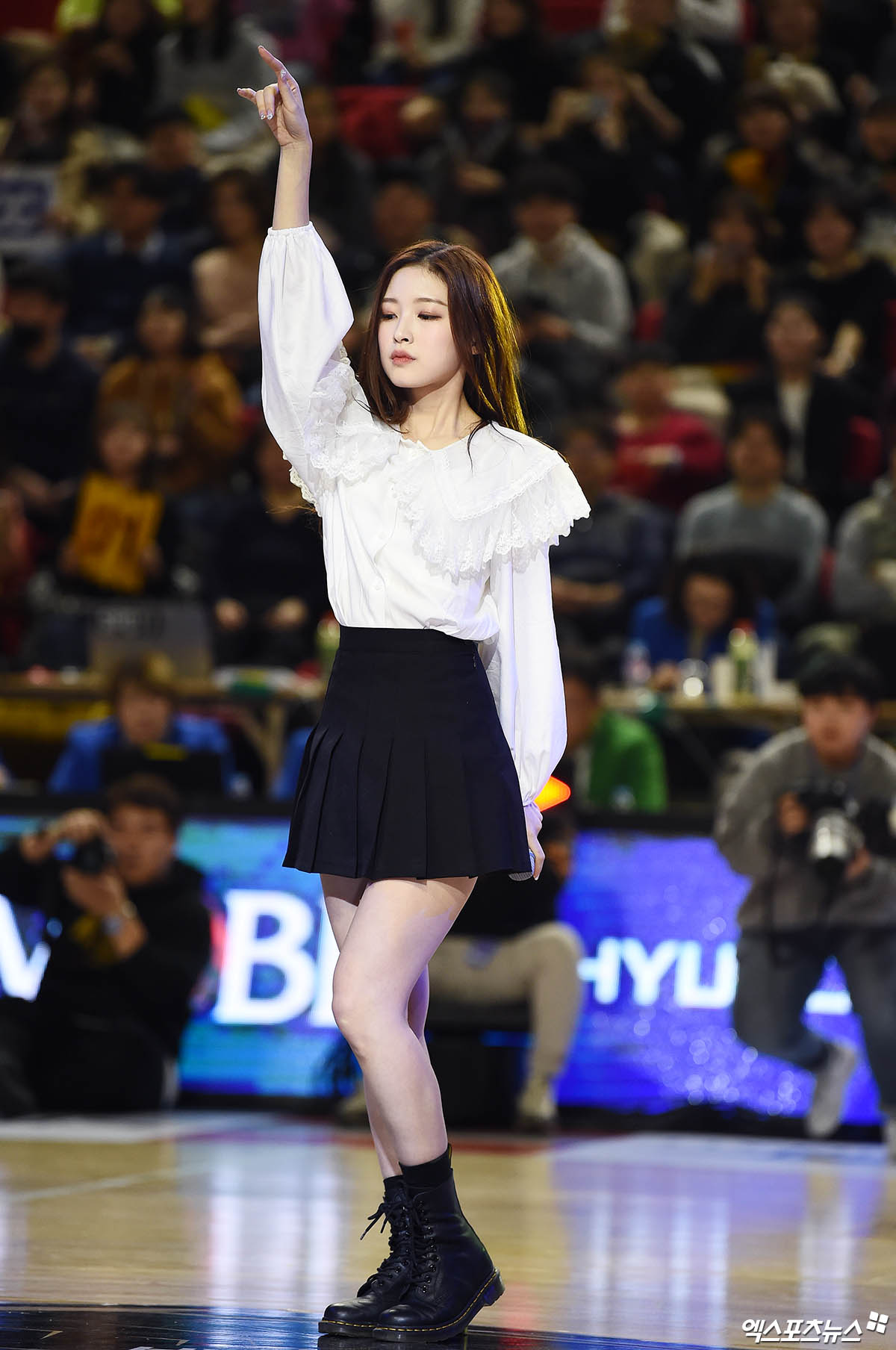 [엑스포츠뉴스 인천, 박지영 기자] 19일 오후 인천 부평구 삼산월드체육관에서 열린 '2019-2020 현대모비스 프로농구 올스타전' 하프타임 때 진행된 그룹 오마이걸 아린이 축하 공연을 선보이고 있다.