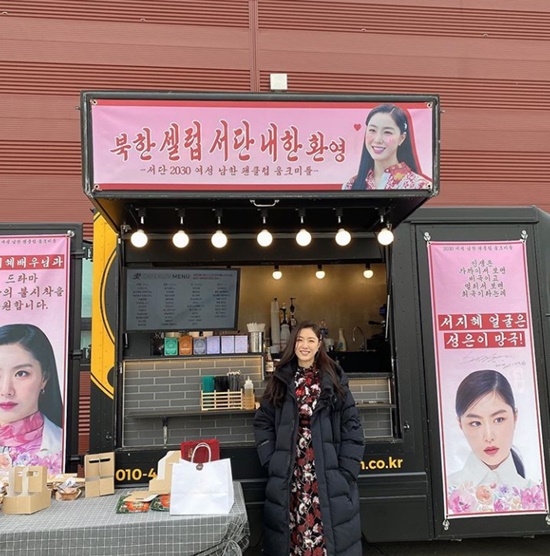 공개된 사진 속 서지혜는 팬들이 보내온 커피차 앞에서 밝게 웃고 있다. '서지혜 얼굴은 성은이 망극' '지혜 배우님과 드라마 '사랑의 불시착'을 응원합니다' '북한 셀럽 서단 내한 환영' 등 센스 넘치는 문구가 눈길을 끈다.