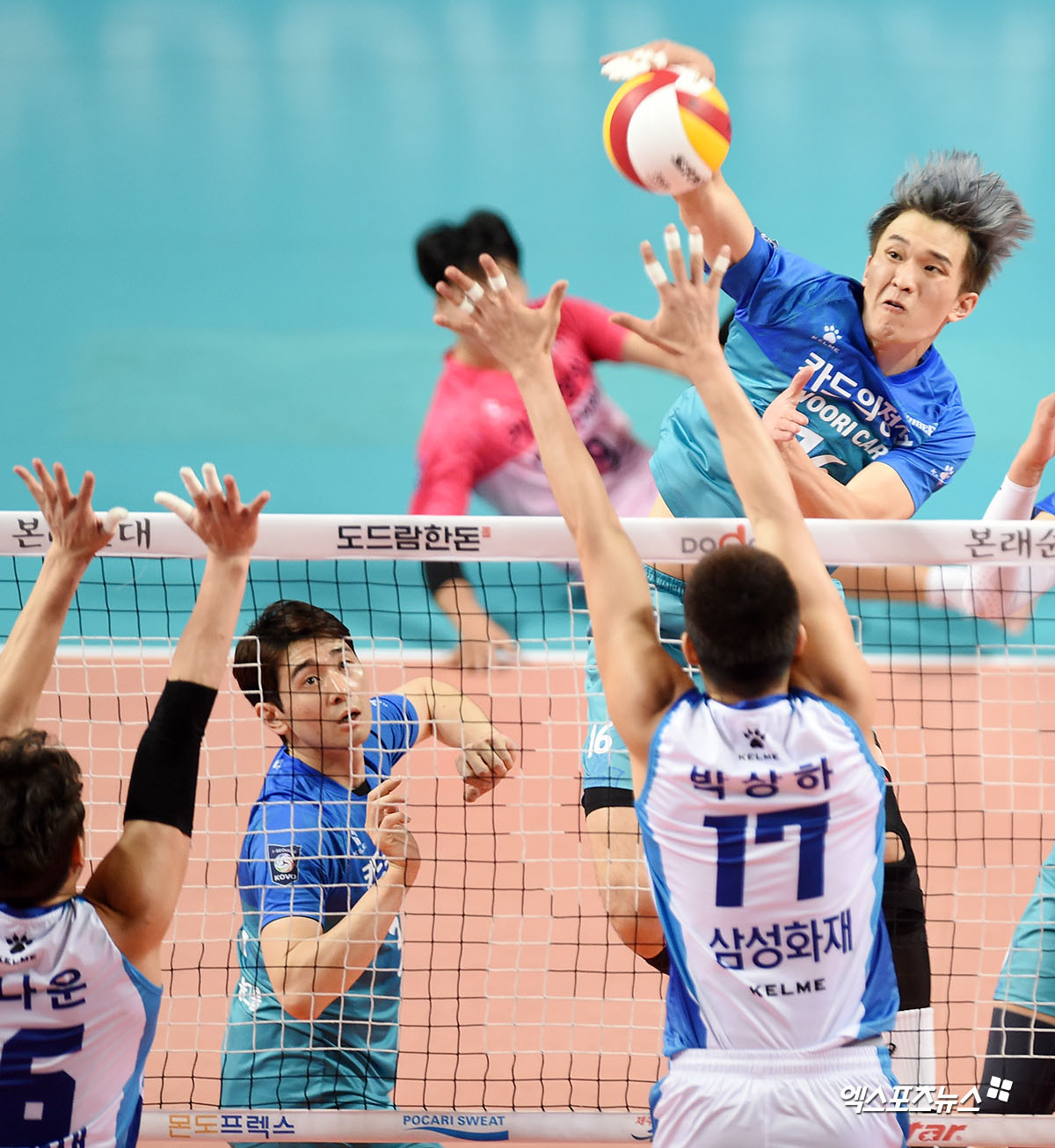 [엑스포츠뉴스 장충, 김한준 기자] 26일 오후 서울 장충체육관에서 열린 '도드람 2019-2020 V리그' 남자부 우리카드와 삼성화재의 경기, 우리카드 최석기가 공격을 시도하고 있다.