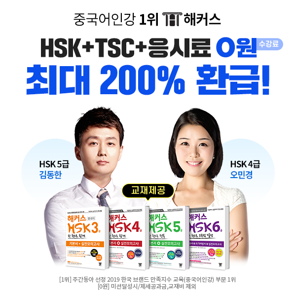 [엑스포츠뉴스 김지연 기자] 겨울방학을 맞아 중국어 스펙을 완성하고자 중국어 배우기를 희망하는 사람들이 HSK/TSC 자격증 인강을 찾고 있다. 이에 2019 중국어인강 1위로 꼽힌 해커스중국어가 HSK 3급, 4급, 5급, 6급, TSC 시험 인강 무제한 수강으로 두 가지 중국어 시험을 한 번에 준비할 수 있는 ‘HSK+TSC+응시료 0원 무제한패스’를 출시했다고 밝혀 주목을 받고 있다.
