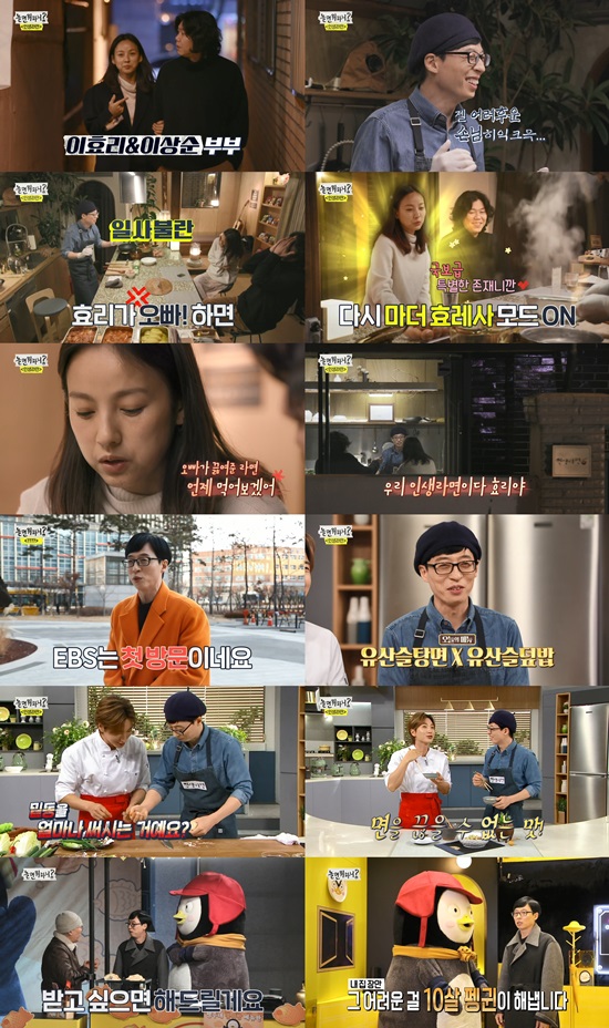 이효리는 '마더효레사'와 '욱 효리' 모드를 오가며 유재석을 들었다 놨다했다. '인생라면'의 시그니처 메뉴 유산슬 라면을 맛본 이효리는 "맛있긴 한데 그렇게 소름 끼치는 맛은 아니다"고 평가하더니 곧 "어디서 이보다 더한 호화로운 음식을 먹을 수 있겠느냐"며 냉탕과 온탕을 오가는 입담으로 유재석과 호흡을 자랑했다.