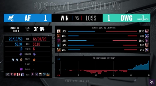 29일 ‘2020 우리은행 LCK Spring Split’에서는 아프리카 프릭스와 담원게이밍의 2세트 경기가 펼쳐졌다.