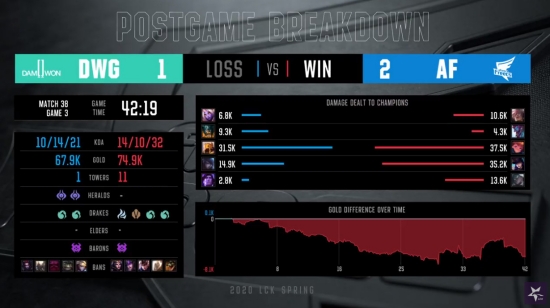 바론 버프를 바탕으로 아프리카는 담원게이밍의 본진에 진군했고, 이를 담원은 막지 못했다. 세트스코어 2대1.