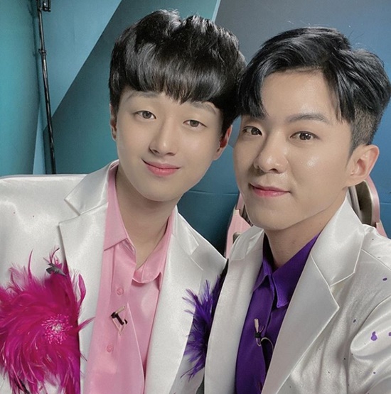 공개된 사진 속 나태주 이찬원은 다정한 분위기 속에서 카메라를 바라보며 미소 짓고 있다. 이찬원은 핑크색 셔츠, 나태주는 보라색 셔츠를 입고 각기 다른 매력의 훈훈한 비주얼을 뽐내 시선을 사로잡았다.