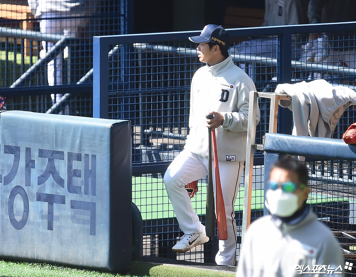 [엑스포츠뉴스 잠실, 박지영 기자] 11일 오후 서울 송파구 잠실야구장에서 두산 베어스 훈련이 진행됐다. 두산 정수빈이 훈련을 하기 위해 그라운드로 나서고 있다.