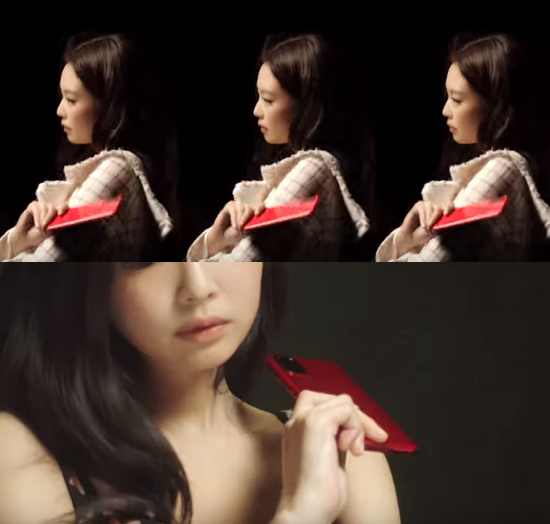 제니는 레드 휴대폰을 들고 당당히 걸어나왔다. 제니의 눈빛이 강렬한 분위기를 자아냈다. 다양한 스타일을 소화하면서도 치명적인 매력을 발산했다.