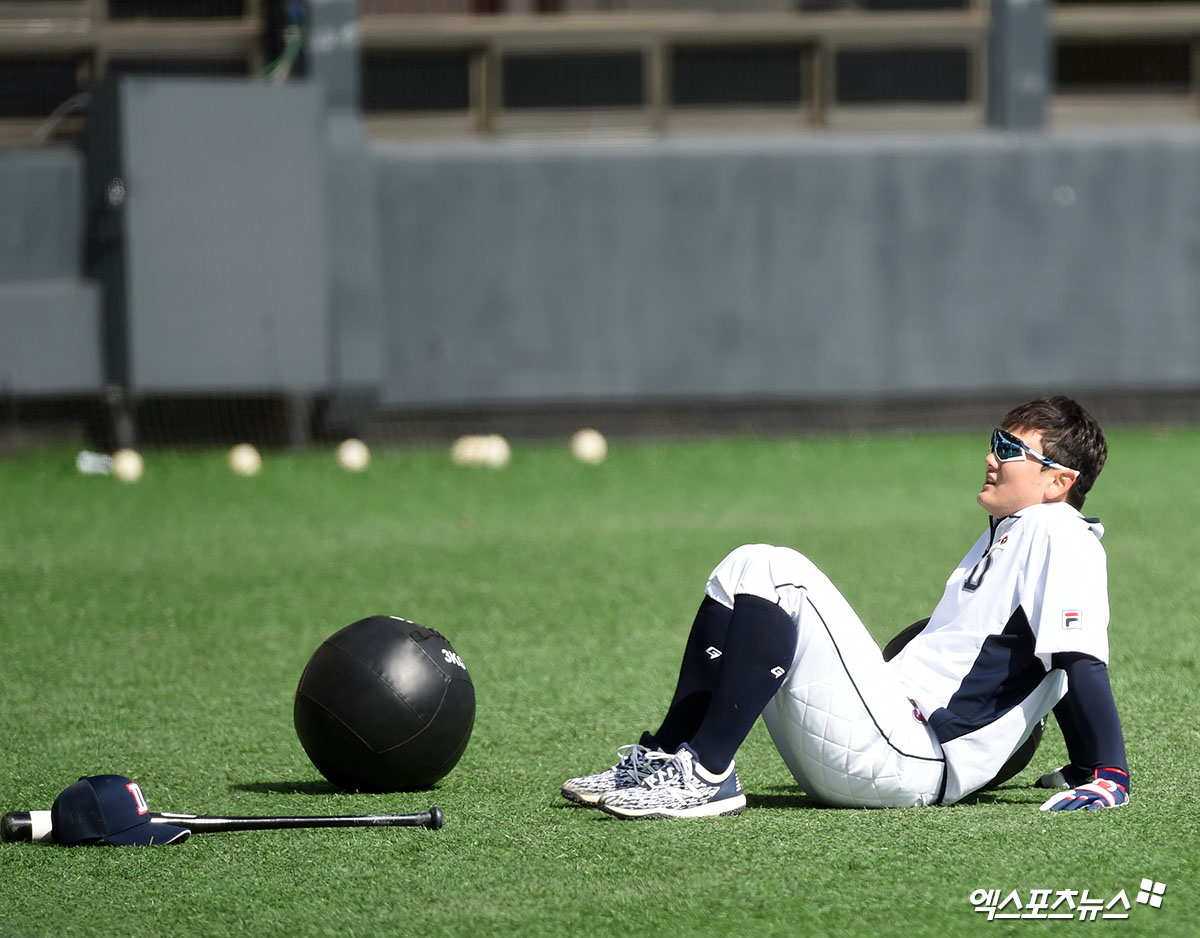 ​[엑스포츠뉴스 잠실, 김한준 기자] 15일 오후 서울 송파구 잠실야구장에서 두산 베어스 훈련이 진행됐다.