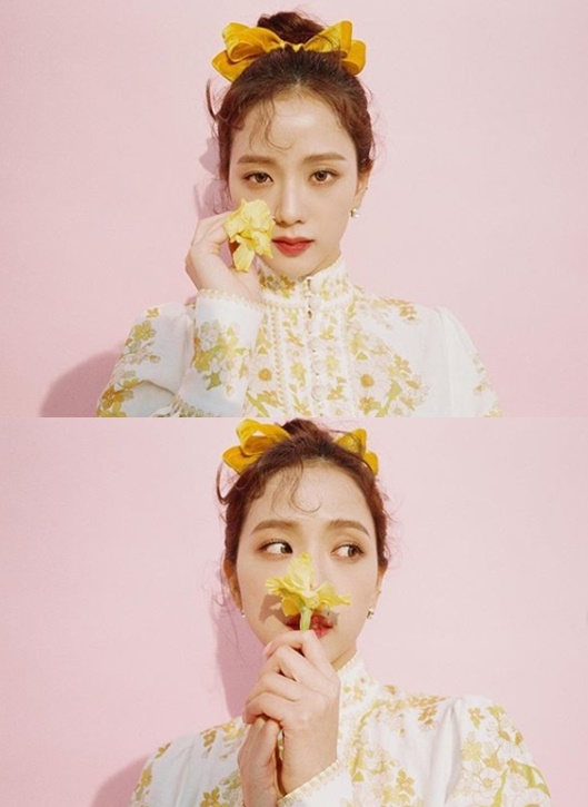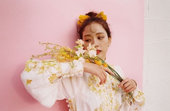 공개된 사진 속 지수는 꽃을 들고 있지만, 꽃보다 더 아름다운 미모를 자랑해 시선을 사로잡는다.