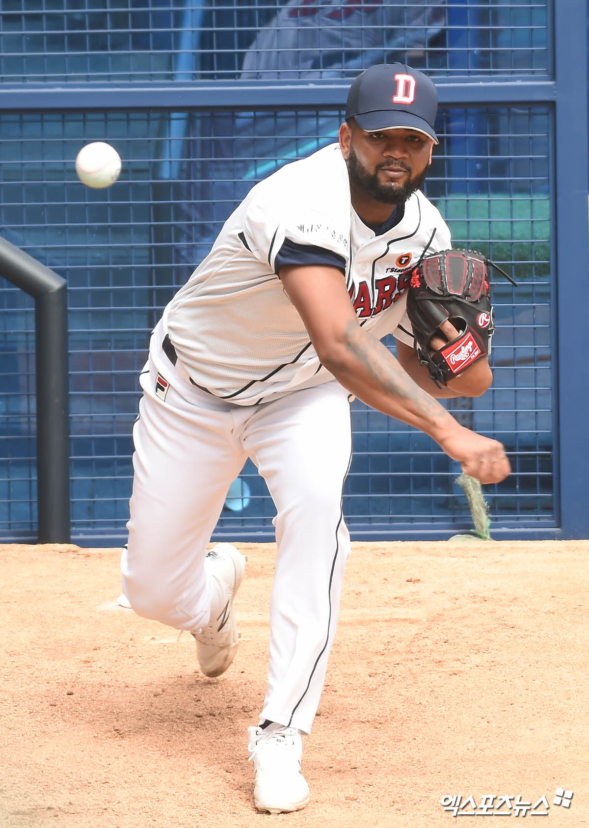 두산 알칸타라가 불펜에서 투구 훈련을 하고 있다.