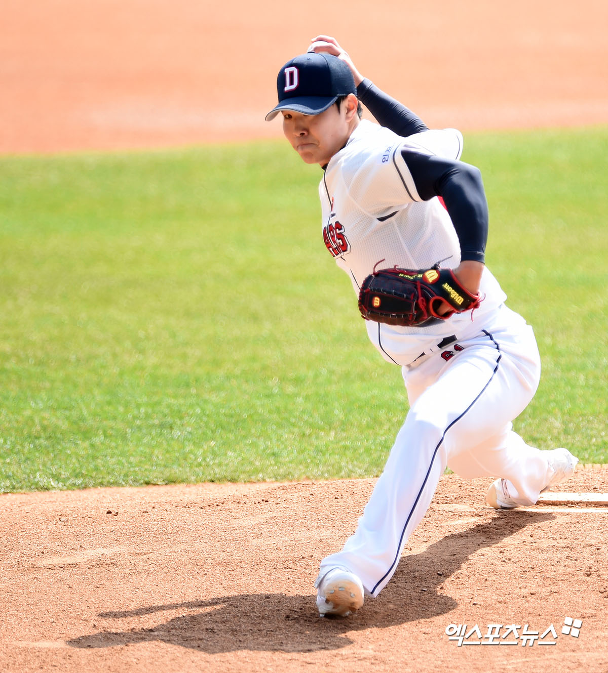 1회초 두산 최원준이 공을 힘차게 던지고 있다.