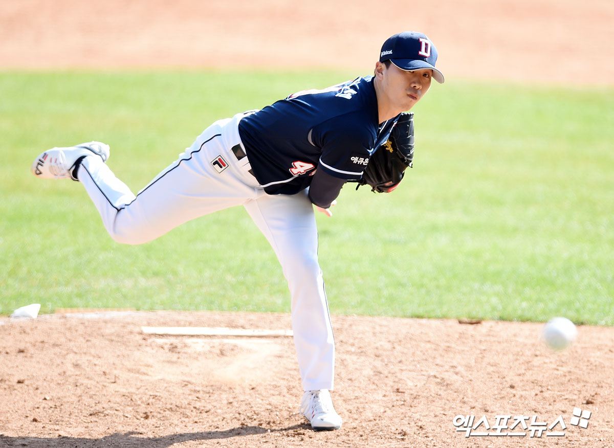 [엑스포츠뉴스 잠실, 김한준 기자] 27일 오후 서울 송파구 잠실야구장에서 열린 두산 베어스 청백전 경기, 6회말 두산 채지선이 공을 힘차게 던지고 있다.