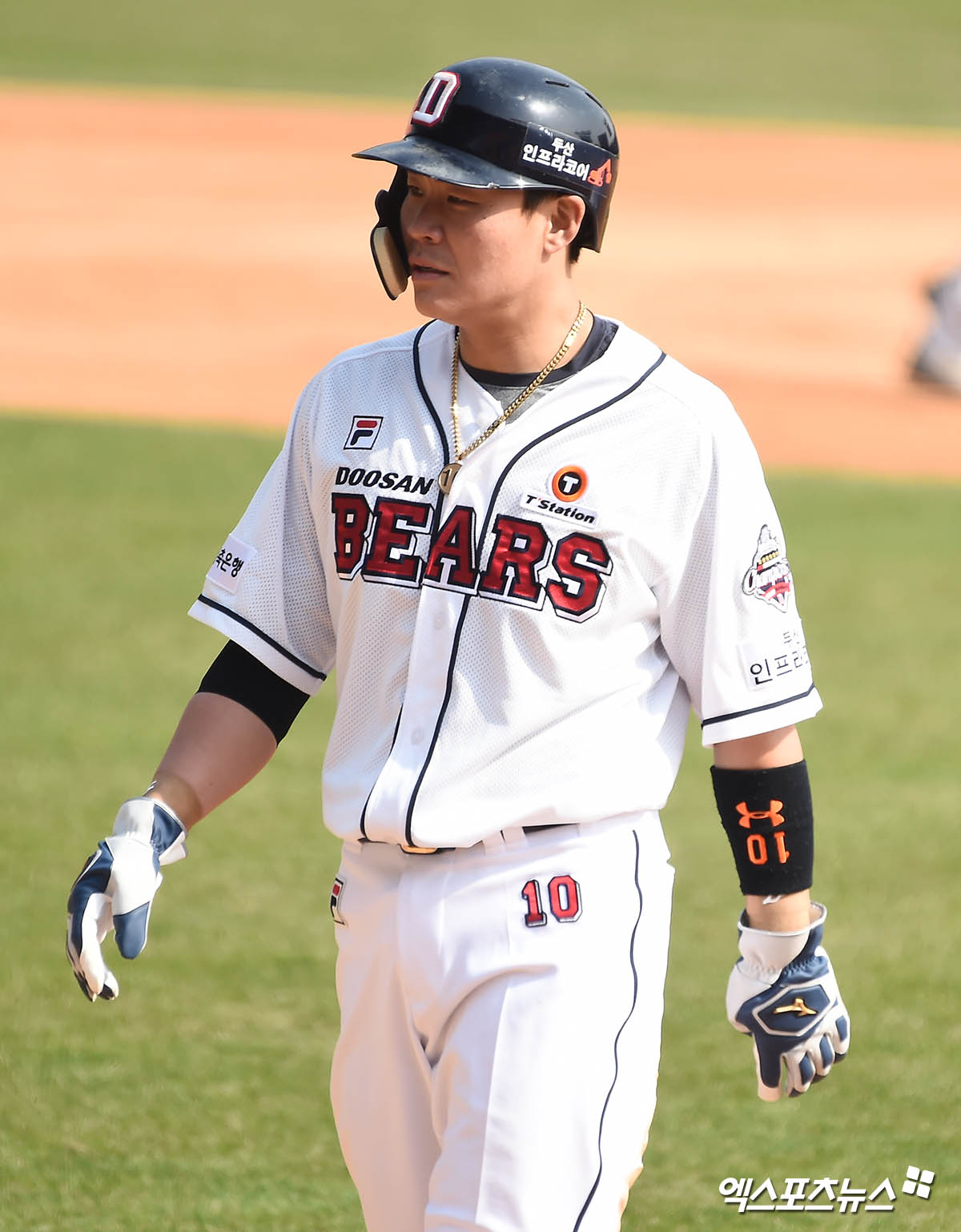 4회말 백팀 박세혁이 도루에 실패하고 더그아웃으로 향하고 있다.