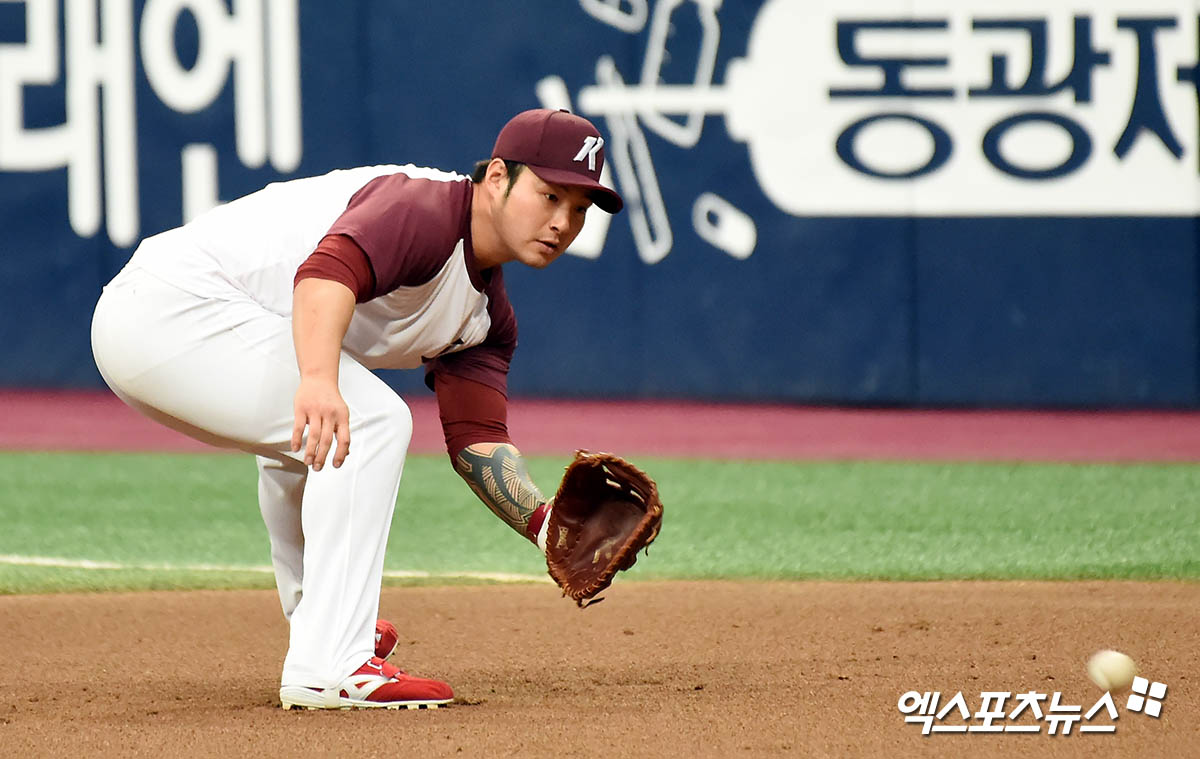 키움 박병호가 수비 훈련을 하고 있다.