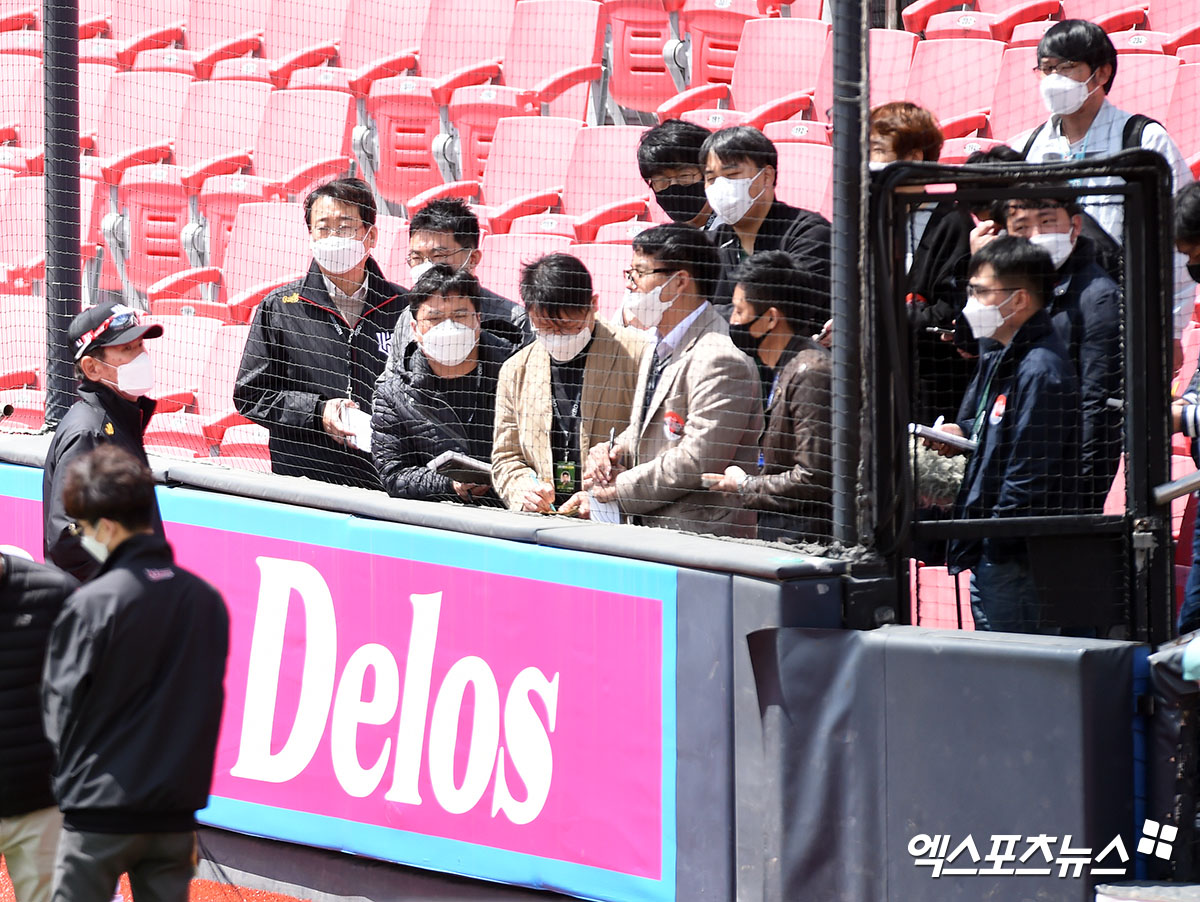 이강철 감독 '취재진과 거리두고 인터뷰 중'[포토]