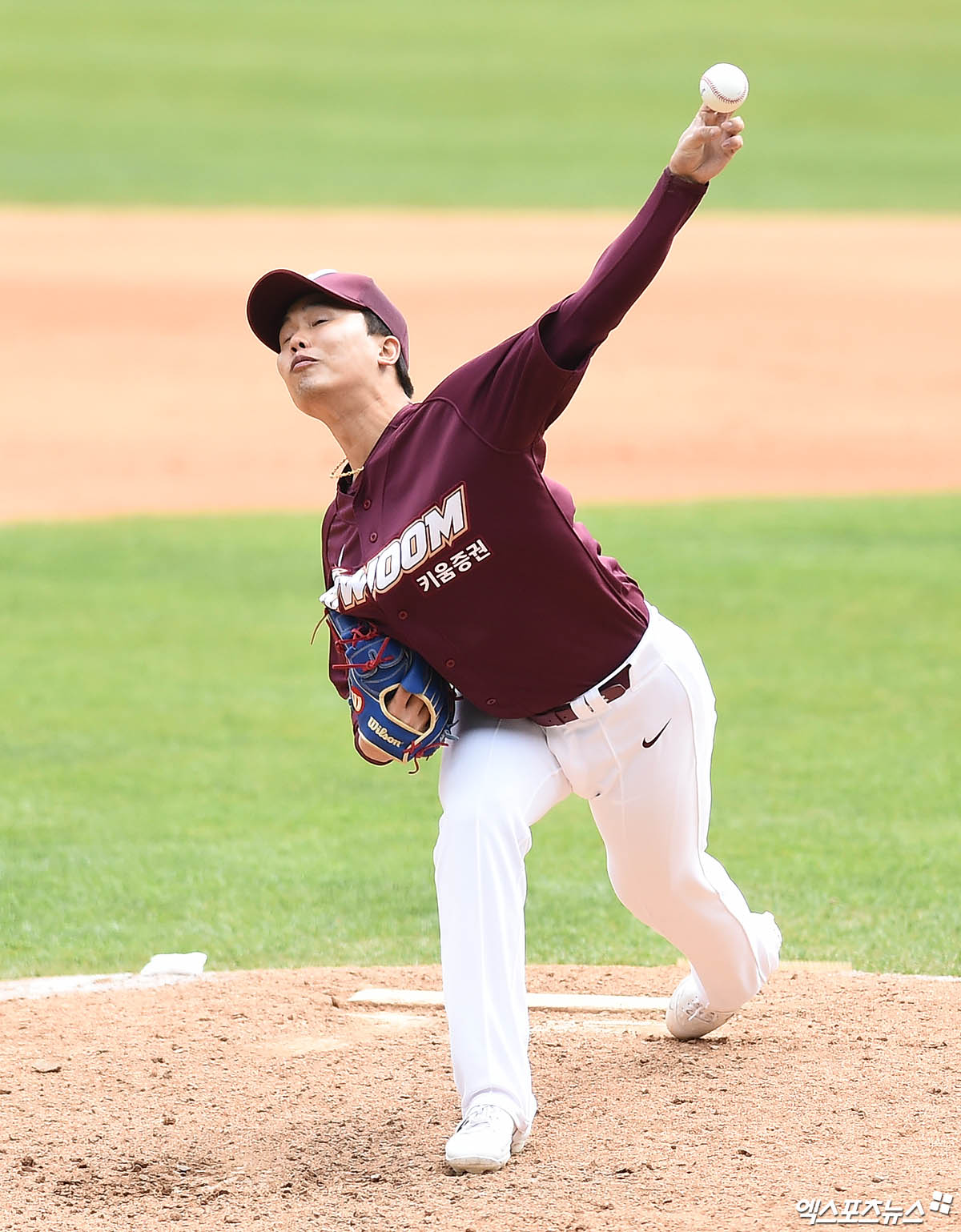 [엑스포츠뉴스 잠실, 박지영 기자] 22일 오후 서울 송파구 잠실야구장에서 열린 '2020 신한은행 SOL KBO리그' 키움 히어로즈와 두산 베어스의 연습경기, 6회말 키움 김성민이 역투하고 있다.