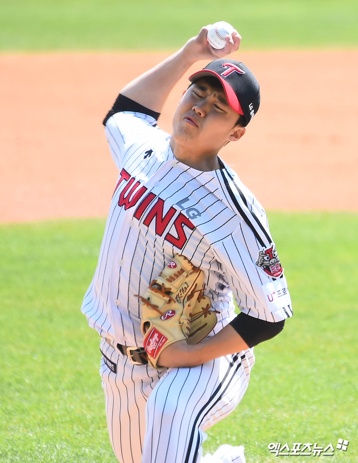[엑스포츠뉴스 잠실, 윤다희 기자] 24일 오후 서울 송파구 잠실야구장에서 열린 ‘2020 신한은행 SOL KBO 리그’ SK 와이번스와 LG 트윈스의 연습경기, 1회초 LG 선발투수 임찬규가 역투하고 있다.