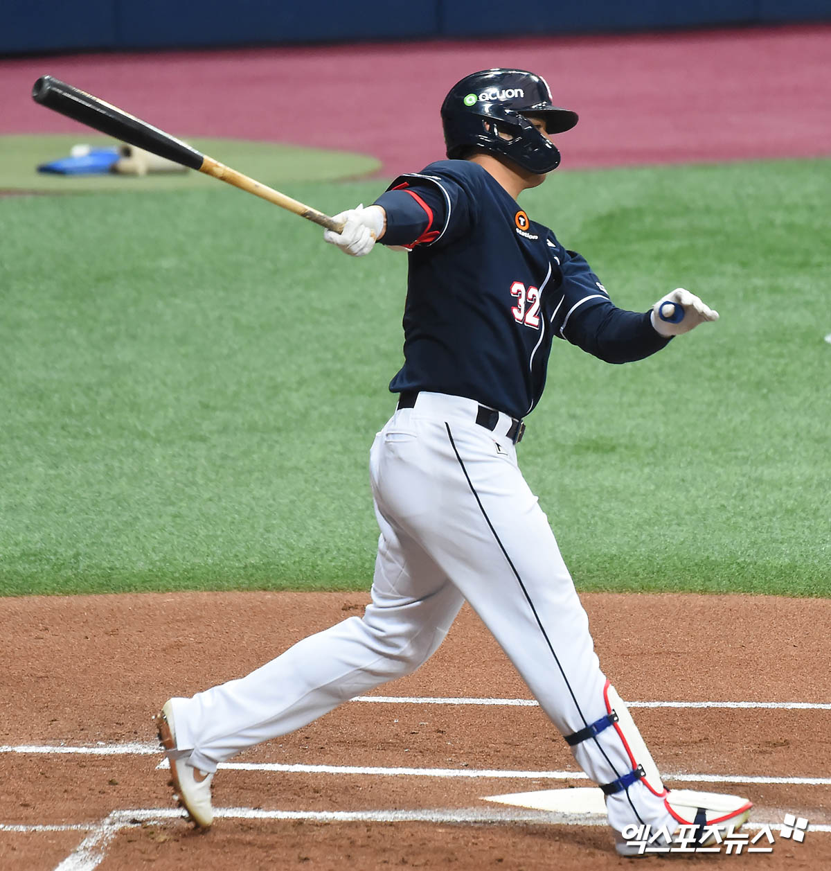 [엑스포츠뉴스 고척, 윤다희 기자] 29일 오후 서울 구로구 고척스카이돔에서 열린 ‘2020 신한은행 SOL KBO 리그’ 두산 베어스와 키움 히어로즈의 연습경기, 2회초 무사 두산 김재환이 안타를 날리고 있다.