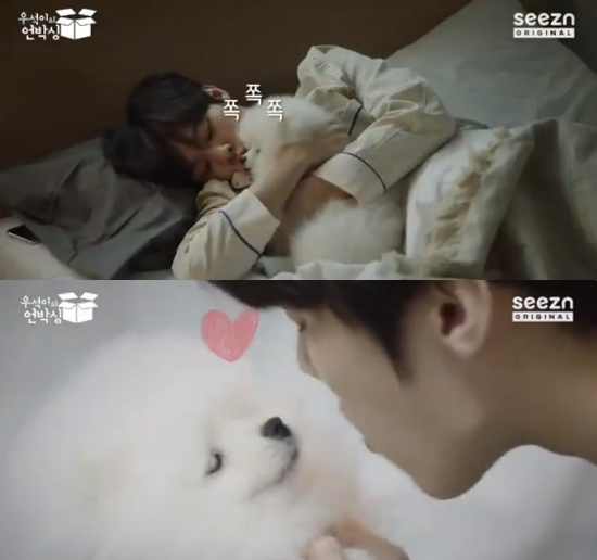 반려견에게 격한 뽀뽀를 날리거나, 잔 실수를 하는 모습부터 양치까지 귀여운 김우석의 매력을 느낄 수 있다.