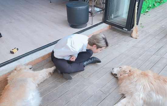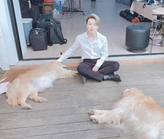 공개된 사진에는 자고 있는 강아지를 미소를 짓고 쳐다보는 지민의 모습이 담겼다. 표정부터 행복해보이는 지민에게 시선이 쏠렸다.