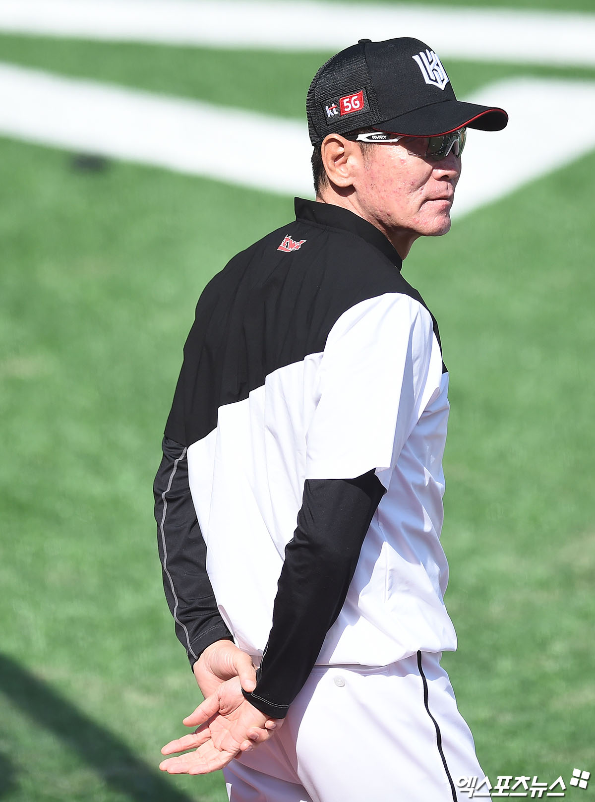 [엑스포츠뉴스 수원, 박지영 기자] 6일 오후 수원kt위즈파크에서 열리는 '2020 신한은행 SOL KBO리그' 롯데 자이언츠와 kt 위즈의 경기에 앞서 kt 이강철 감독이 선수들의 훈련을 지켜보고 있다.