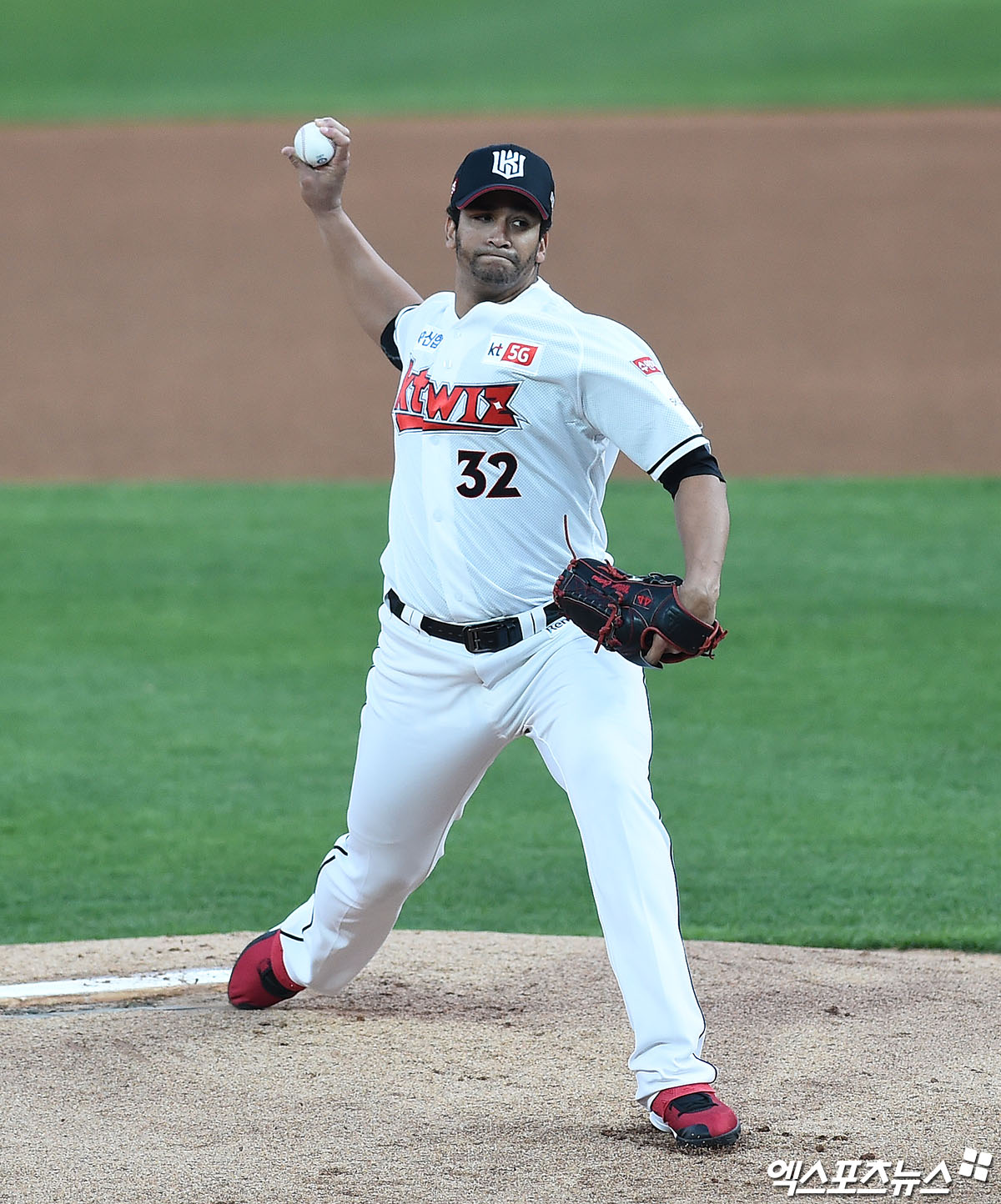 [엑스포츠뉴스 수원, 박지영 기자] 6일 오후 수원kt위즈파크에서 열린 '2020 신한은행 SOL KBO리그' 롯데 자이언츠와 kt 위즈의 경기, 1회초 kt 선발투수 쿠에바스가 역투하고 있다.