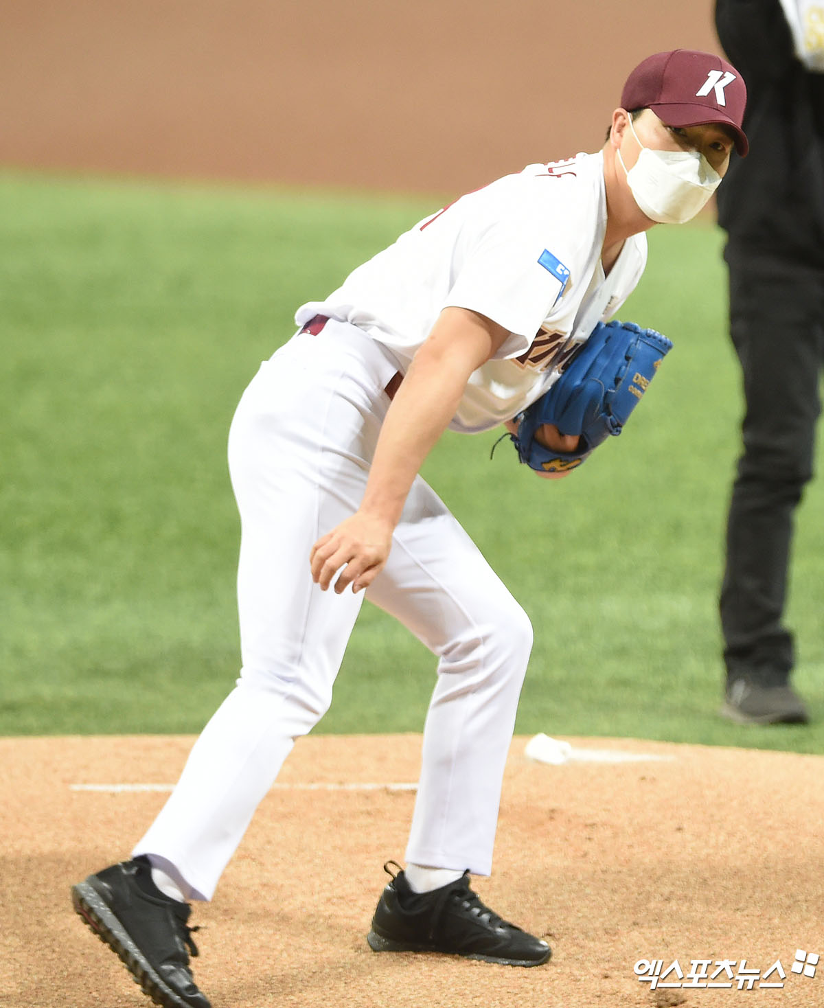 [엑스포츠뉴스 고척, 김한준 기자] 8일 오후 서울 구로구 고척스카이돔에서 열린 ‘2020 신한은행 SOL KBO 리그’ 한화 이글스와 키움 히어로즈의 경기, 경기 전 배우 하도권이 시구에 임하고 있다.
