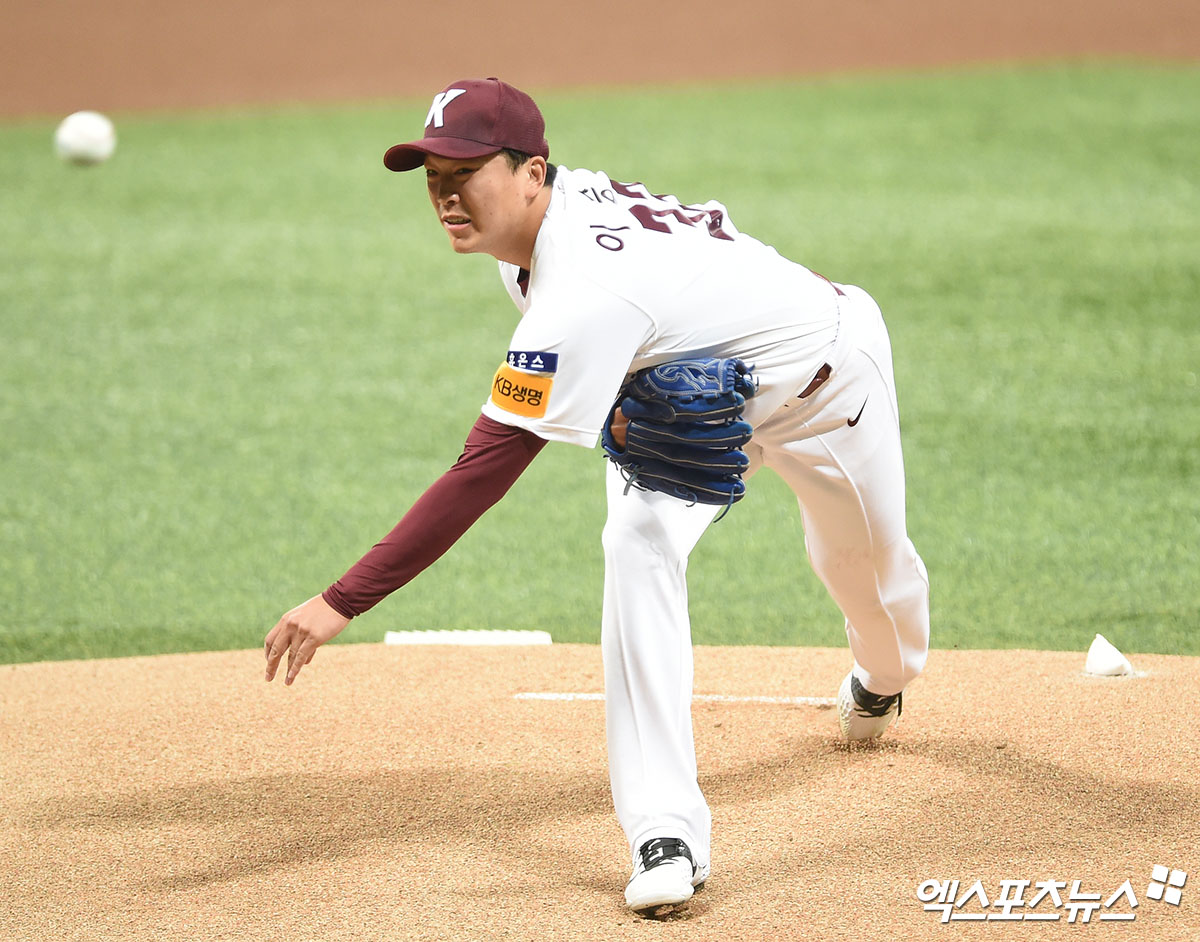 [엑스포츠뉴스 고척, 김한준 기자] 8일 오후 서울 구로구 고척스카이돔에서 열린 ‘2020 신한은행 SOL KBO 리그’ 한화 이글스와 키움 히어로즈의 경기, 1회초 키움 선발투수 이승호가 공을 힘차게 던지고 있다.
