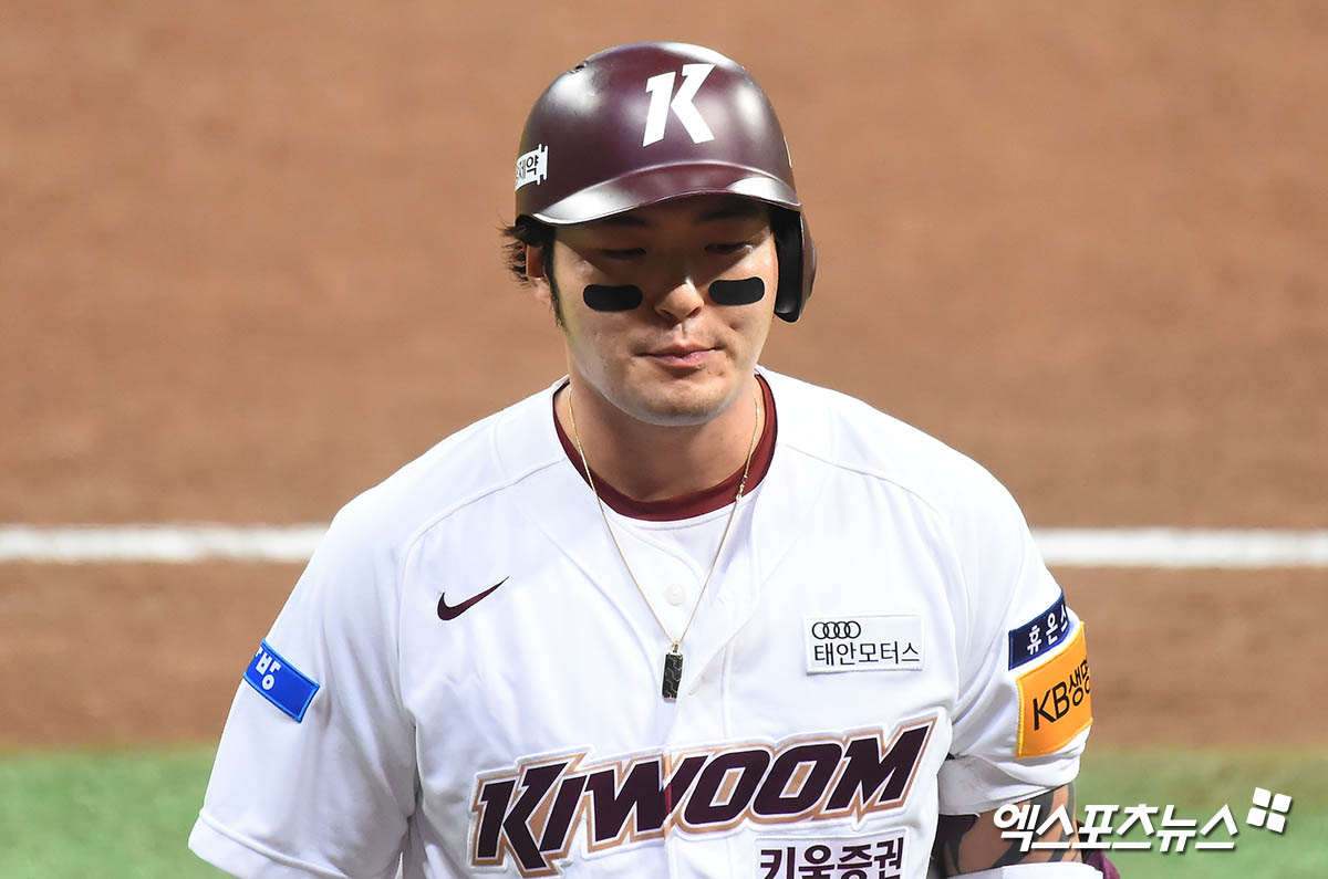 [엑스포츠뉴스 고척, 윤다희 기자] 9일 오후 서울 구로구 고척스카이돔에서 열린 ‘2020 신한은행 SOL KBO 리그’ 한화 이글스와 키움 히어로즈의 경기, 5회말 2사 만루 키움 박병호가 중견수 플라이로 아웃된 후 아쉬워하고 있다.