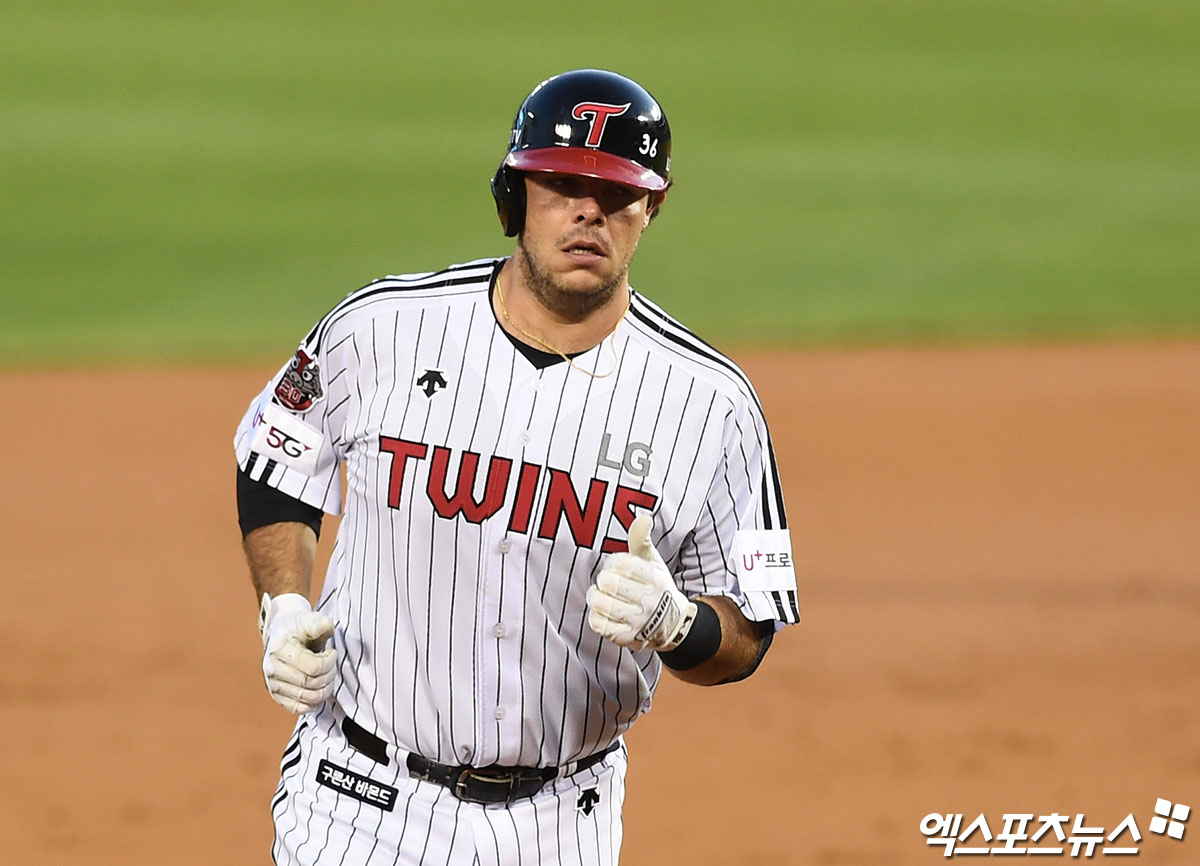 [엑스포츠뉴스 잠실, 박지영 기자] 12일 오후 서울 송파구 잠실야구장에서 열린 '2020 신한은행 SOL KBO리그' SK 와이번스와 LG 트윈스의 경기, 3회말 1사 1루 LG 라모스가 투런 홈런을 때려낸 뒤 베이스를 돌고 있다.