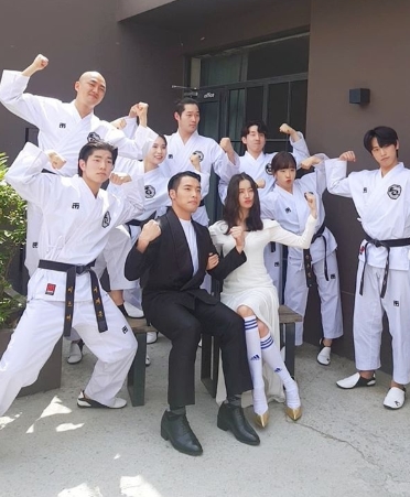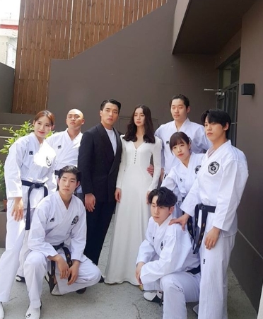 공개된 사진 속에는 새하얀 드레스를 입은 혜림, 턱시도를 차려입은 신민철의 모습이 담겼다. 이들의 옆엔 도복을 입은 신민철 태권도 팀 선수들이 함께해 눈길을 끌었다.