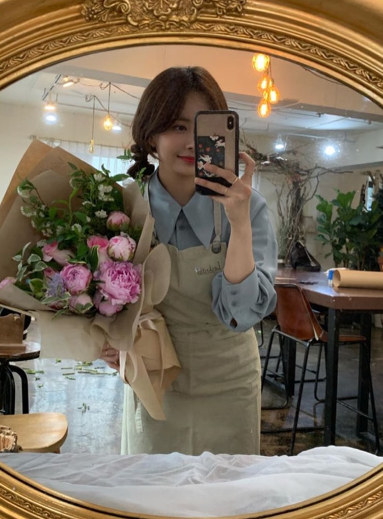 한보름은 26일 자신의 인스타그램에 "꽃집 문 닫고 이쁜 선생님이랑 단 둘이 꽃 수업 (퐁퐁이)"라는 글과 함께 사진을 게재했다.