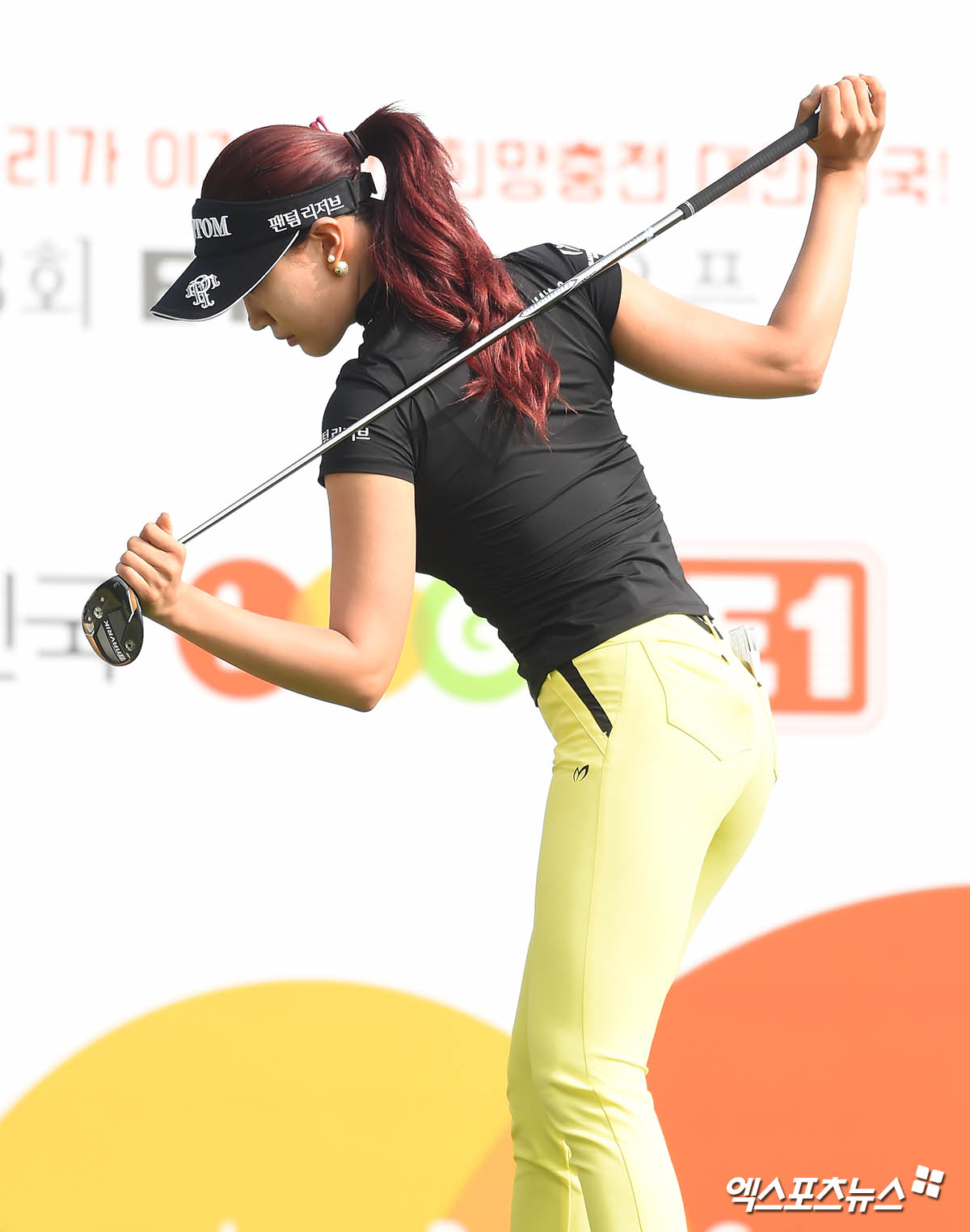 [엑스포츠뉴스 이천, 윤다희 기자] 28일 오전 경기도 사우스스프링스 컨트리클럽에서 열린 ‘제8회 E1 채리티 오픈(총상금 8억원, 우승상금 1억6천만원)’ 1라운드 경기, 유현주(26, 골든블루)가 1번홀 티샷을 준비하고 있다.