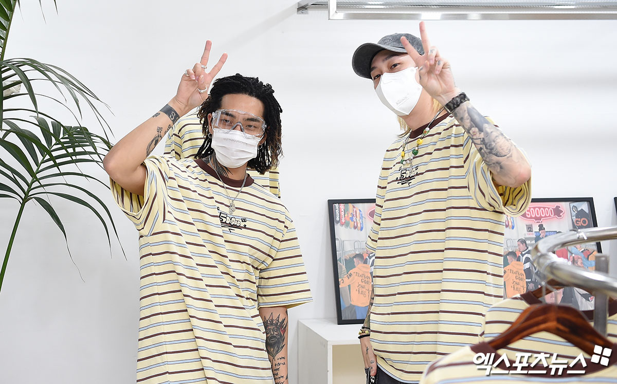 [엑스포츠뉴스 박지영 기자] 30일 오후 서울 신사동 쿠드그라스에서 래퍼 레디 새 앨범 ‘500000’ 발매 기념 머천다이즈 팝업스토어가 열렸다. 이날 행사에 참석한 레디와 슬리피가 포즈를 취하고 있다.