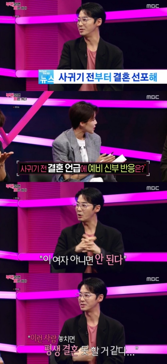 또 라비는 "후광이 있었냐"라며 거들었고, 전진은 "광이랑 광은 다 있다. '이런 사람을 놓치면 평생 결혼 못 할 거 같다'라는 생각이 들었다"라며 고백했다.