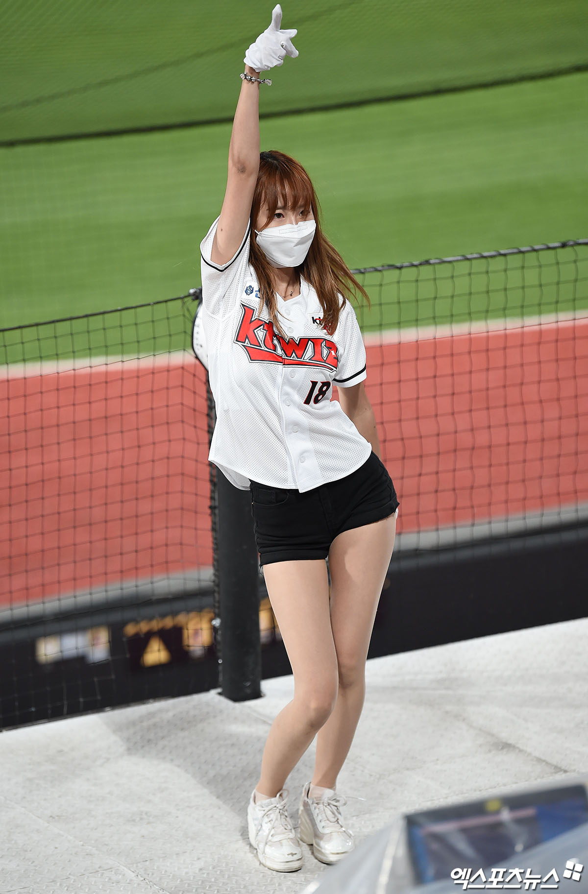 [엑스포츠뉴스 수원, 박지영 기자] 2일 오후 수원KT위즈파크에서 열린 '2020 신한은행 SOL KBO리그' 두산 베어스와 KT 위즈의 경기, KT 치어리더 유주흔이 멋진 공연을 선보이고 있다.